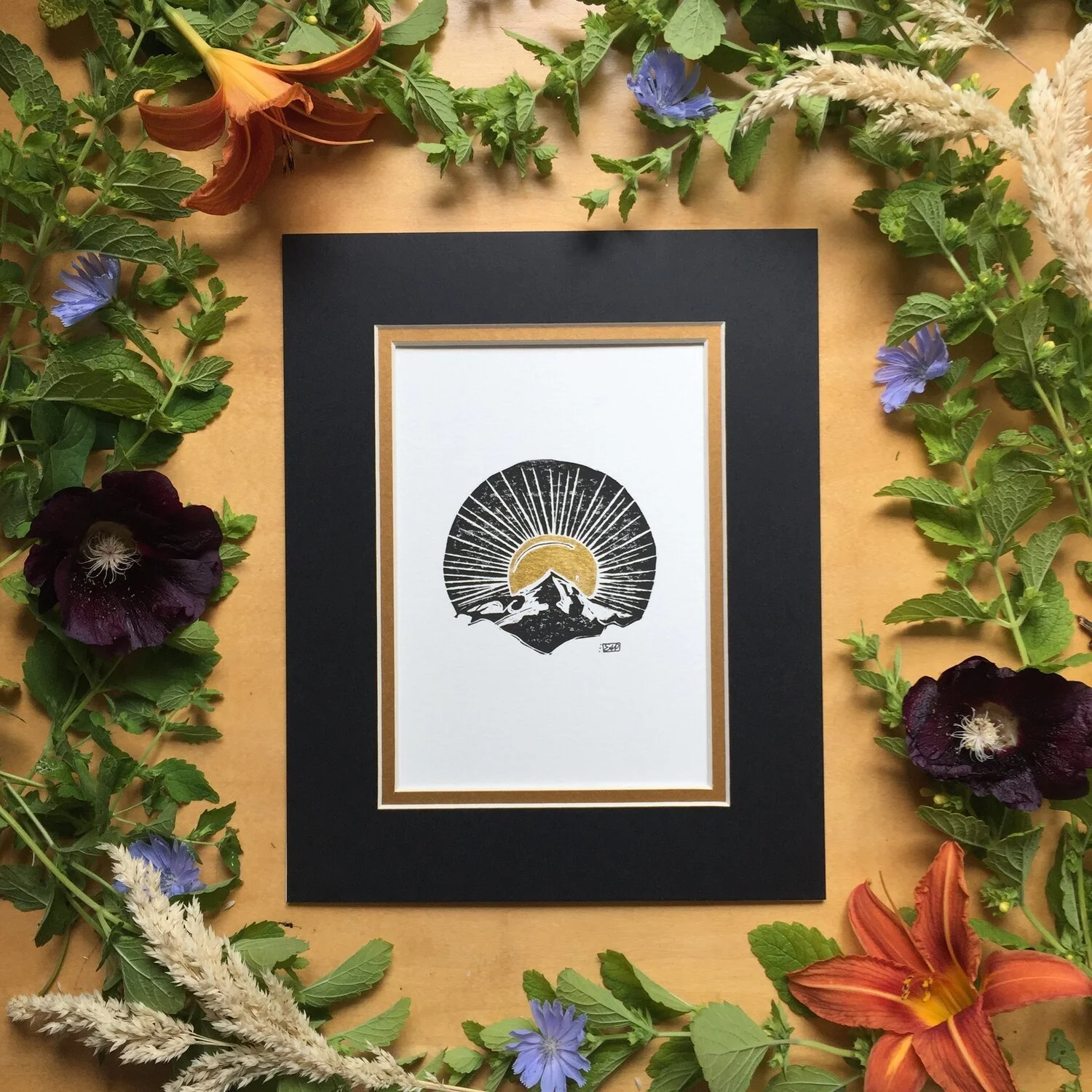This linocut block print was inspired by the memory of watching the sun rise behind Mt. Hood as a girl in the winter months. This piece is a reminder of hope in the darkest of seasons and that the light will always return.